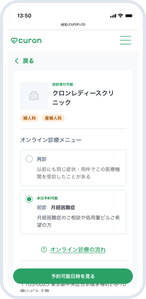 医師がオンラインにて診療可能と判断した場合、行っていただくことが可能です。初診でのオンライン診療を受け付けている医療機関は、